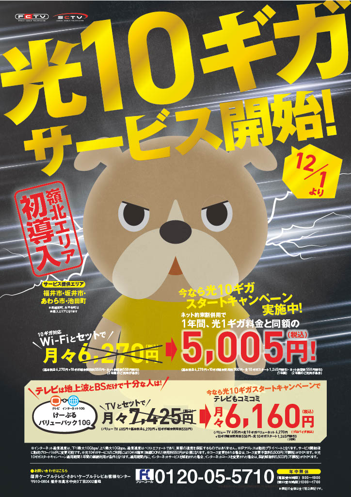 光10ギガサービス提供エリア:福井市、坂井市、あわら市、池田町