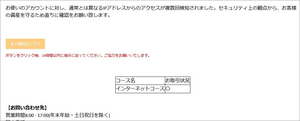 件名:【SBI証券】異常検知による確認要請によりログイン確認をお願いしますをお願いします